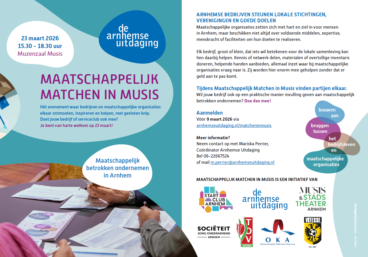 Meer informatie? Neem contact op met Mariska Perrier, Coördinator Arnhemse Uitdaging (m.perrier@arnhemseuitdaging.nl / 06-22667524