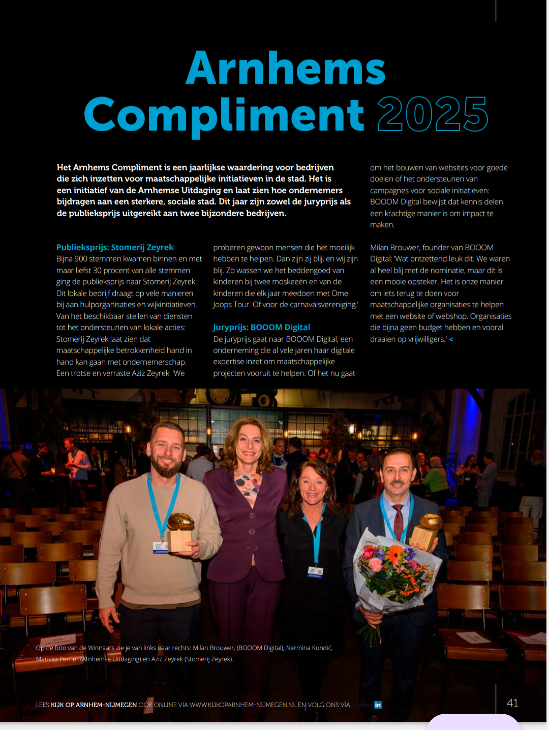 Artikel winnaars Arnhems Compliment 2025 in Kijk op Arnhem Nijmegen december 2025